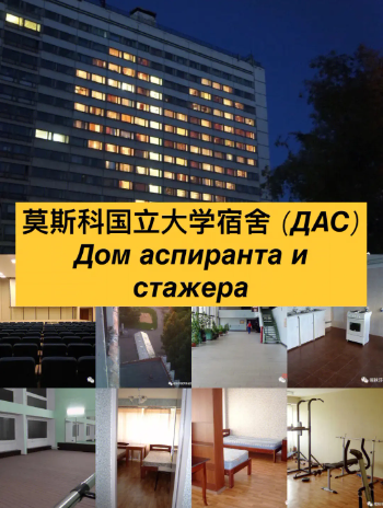 地址:莫斯科市什维尔尼卡街19号 交通路线:“大学”地铁站,然后乘坐26号电车到“什维尔尼卡街”站;“沙博洛夫卡”地铁站,然后乘26路电车到“什维尔尼卡街”站;“科学院”地铁站,然后步行(15分钟)或乘坐121路公交车到“什维尔尼卡街”站。 ДАС是一个块状的宿舍。旅馆设有单房区(入口大厅+组合卫浴+房间),可容纳1至4人;双房区(入口大厅+组合(或独立)卫浴+ 2个房间),可容纳2至6人;三房区(入口大厅+独立卫浴+ 3个房间),可容纳4-5人。宿舍每一层都设有带水槽和电炉的厨房,部分楼层设有自助洗衣房,自习室,健身房和休息室。在三栋(ДАС-3)中有莫大饮食营养企业的食堂,莫大科学图书馆的阅览室,电影音乐厅,商店,洗衣房和医务室。宿舍内可以联网上网。