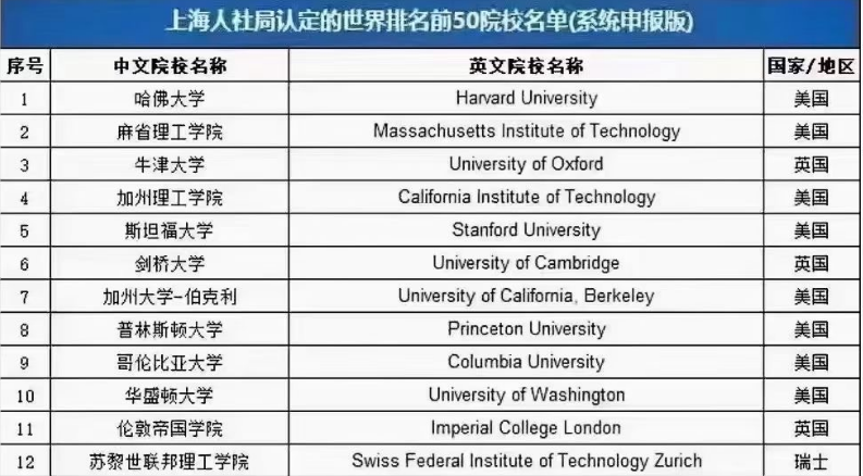 对于世界排名前50的学校,可以直接落户,无社保缴纳基数和时间要求。