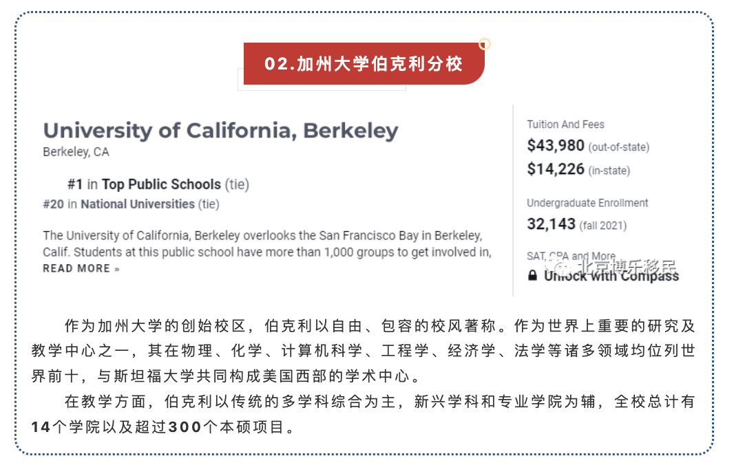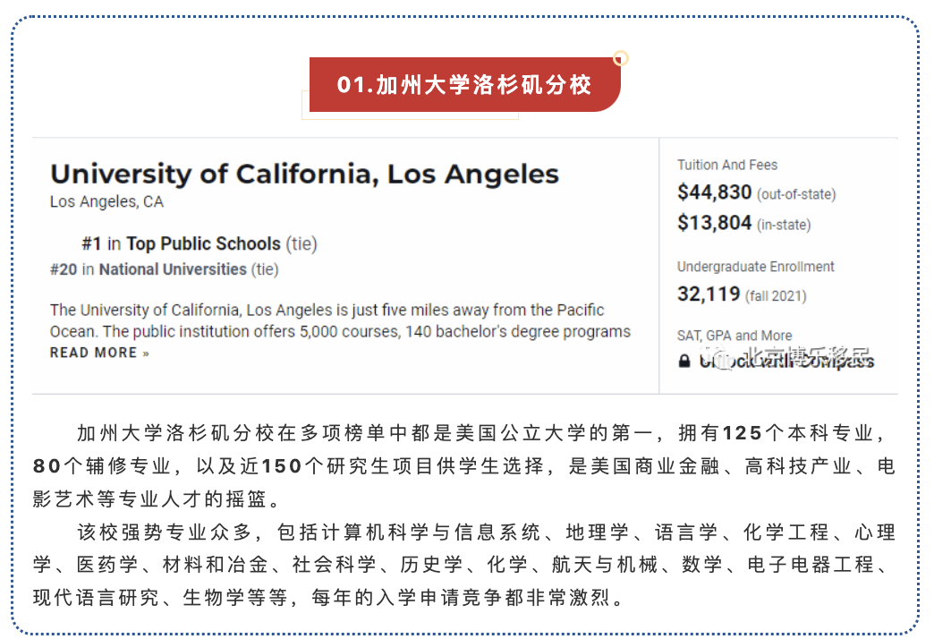 U.S. News & World Report《美国新闻与世界报道》(简称U.S. News)官方发布了2023年美国公立大学排名(2023 Top Public Schools)。其中, 加州福尼亚大学伯克利分校(University of Califonia , Berkeley)和加州福尼亚大学洛杉矶分校(University of Califonia , Los Angeles)同时位列榜单冠军 。