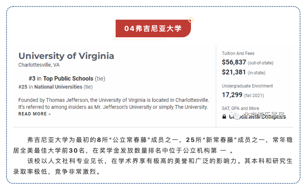 根据U.S.News数据显示 , 2022-2023学年,美国私立大学的平均学杂费为39,723美元 ,相较去年 (38,185美元) 上涨4%;公立大学州外学费为22,953美元,相较去年(22,698美元) 上涨1%;相对来说就读美国公立大学需要的费用低些,并且美国顶级公立大学的教学质量、师资水平也不输私立大学。 公立学院和大学通常在州政府的监督下运作,部分资金来自税收和州政府的补贴拨款。 下面和小编一起来看一下学校吧!
