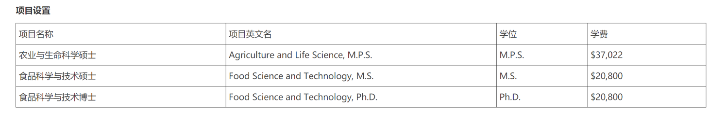 申请说明:康奈尔大学食品科学与技术(Food Science and Technology)是食品科学系的下设设专业之一,研究生阶段开设的学位有:MPS、MS、PhD三种。申请者的专业背景要求包括生物学、化学、微生物学、生物化学。