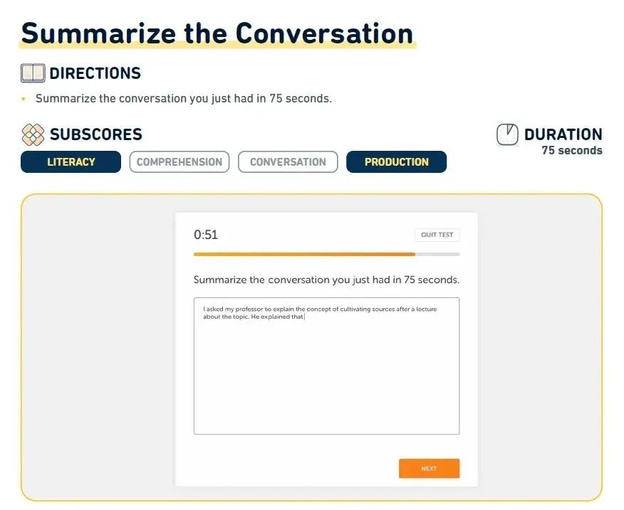 B.Summarize the Conversation测试考生的读写能力和说写能力