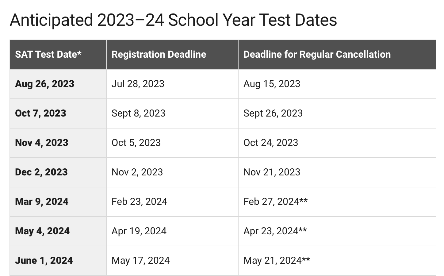 SAT/ACT 2023年考试时间