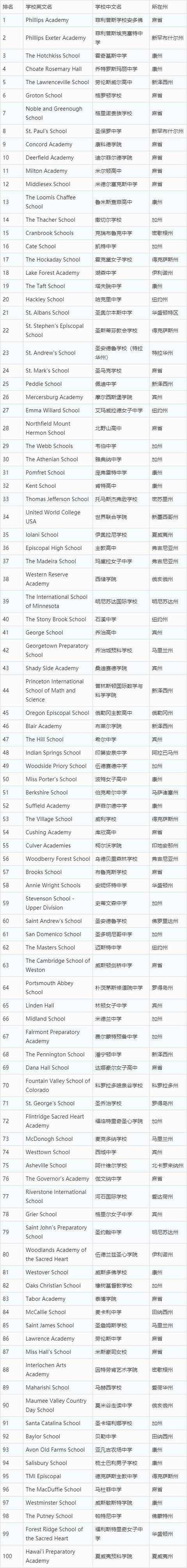 今年的冠军是菲利普斯安多佛中学,劳伦斯威尔高中从2020年的第10跌落到第16,塔夫脱中学此次上升的比较快,从第88上升到69。