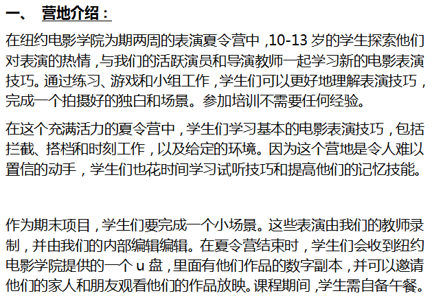 > Kids-纽约电影学院儿童夏令营——电影表演