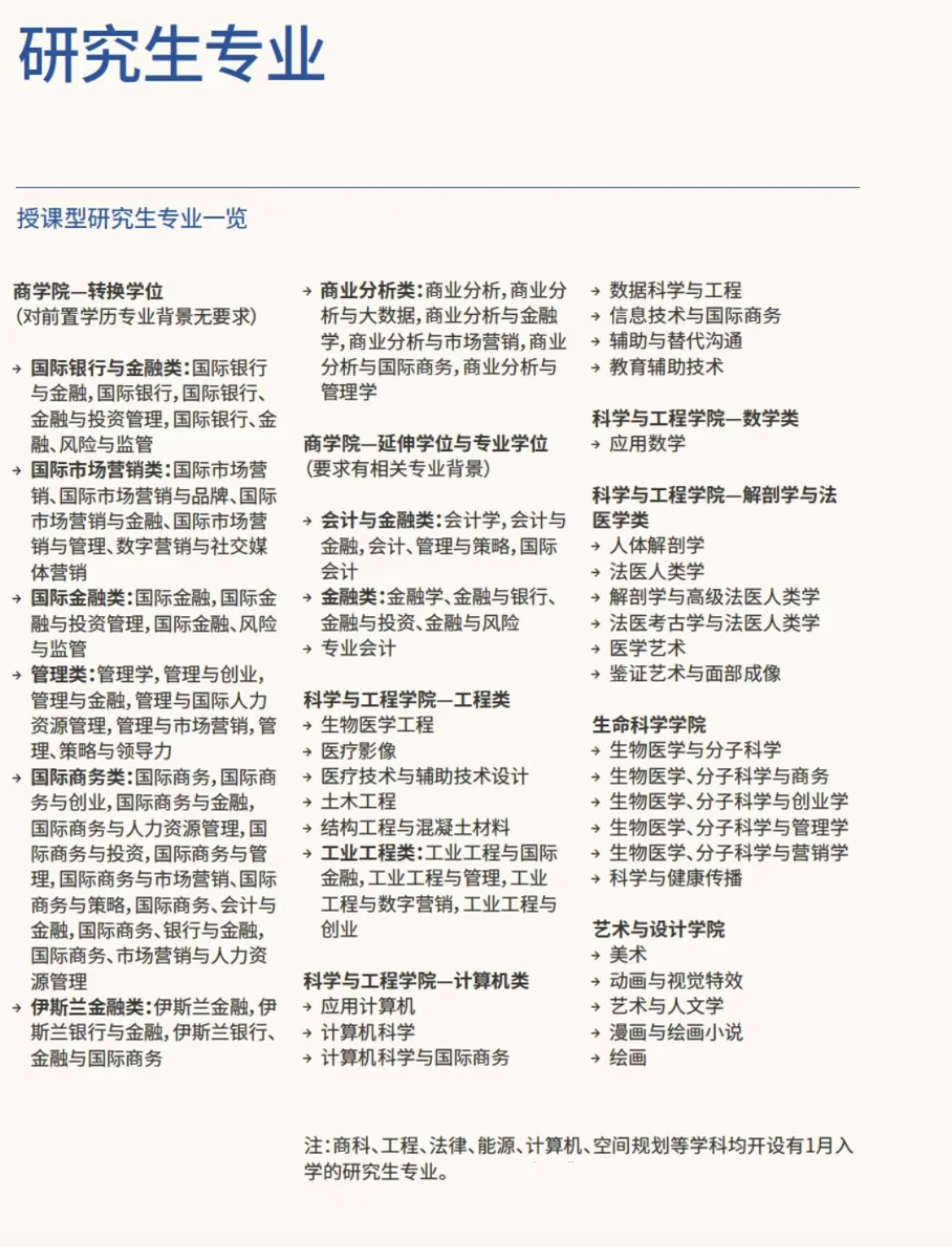 课程设置方面来看,邓迪大学在金融、会计、理工科、文艺科等学科均有课程设置,满足不同学生的需求,可选择性非常高,同时都是受中留服国际认证的。