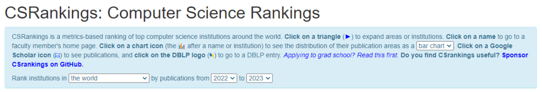 近日CS Ranking更新2023计算机学科世界大学排名,该排名能够就CS院校的研究生项目质量给同学们提供直观和快速的参考。
