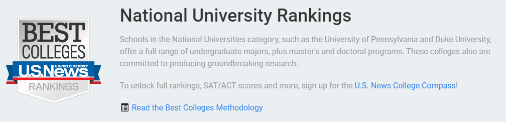USnews调查了一些顶尖的学者——校长、校长和招生主任——要求他们对他们所熟悉的大学的学术质量进行评分。USnews还调查了来自所有50个州和华盛顿特区的公立、私立高中的近24400名辅导员Counselor对于大学的评价。