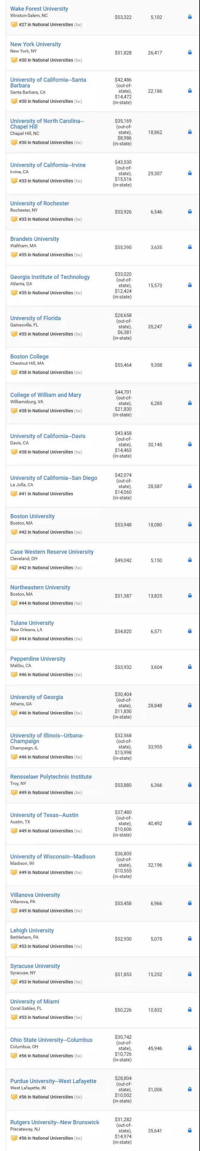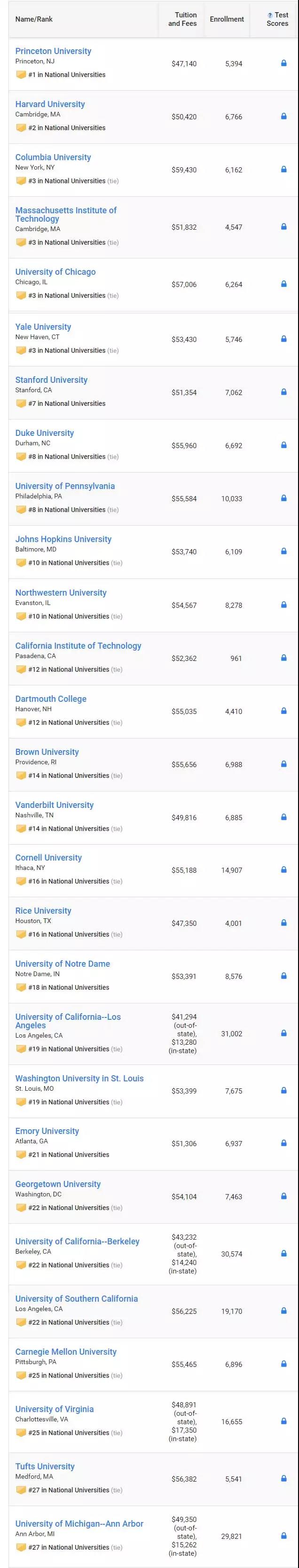 美国有多个机构对大学进行排名,其中最具权威和影响力的就是由U.S.News在每年9月发布的美国大学排名,即U.S.News排名。本次排名冠军仍然属于普林斯顿大学,哈佛大学第二,哥伦比亚大学、MIT、芝加哥大学、耶鲁大学并列第三!斯坦福大学今年第七名,杜克第八,宾大第八,约翰霍普金斯挺进前十!