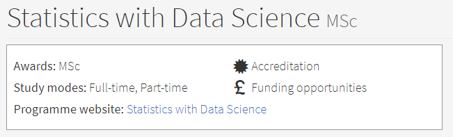 学位必须包含大量的数学内容,包括微积分(包括多个变量的微积分)、线性代数、概率、统计学和统计理论 中国留学生成绩要求在Band C,名单内院校要求80%,其他院校要求85% 雅思要求总分6.5,各单项成绩不低于6.0