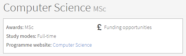 编程能力是必不可少的,必须至少完成以下课程之一的编程课程:C/C++、Java、Python、R、Matlab、Haskell、ML 中国留学生成绩要求在Band B,仅考虑名单内院校,均分要求80% 雅思要求总分7.0,各单项成绩不低于6.5