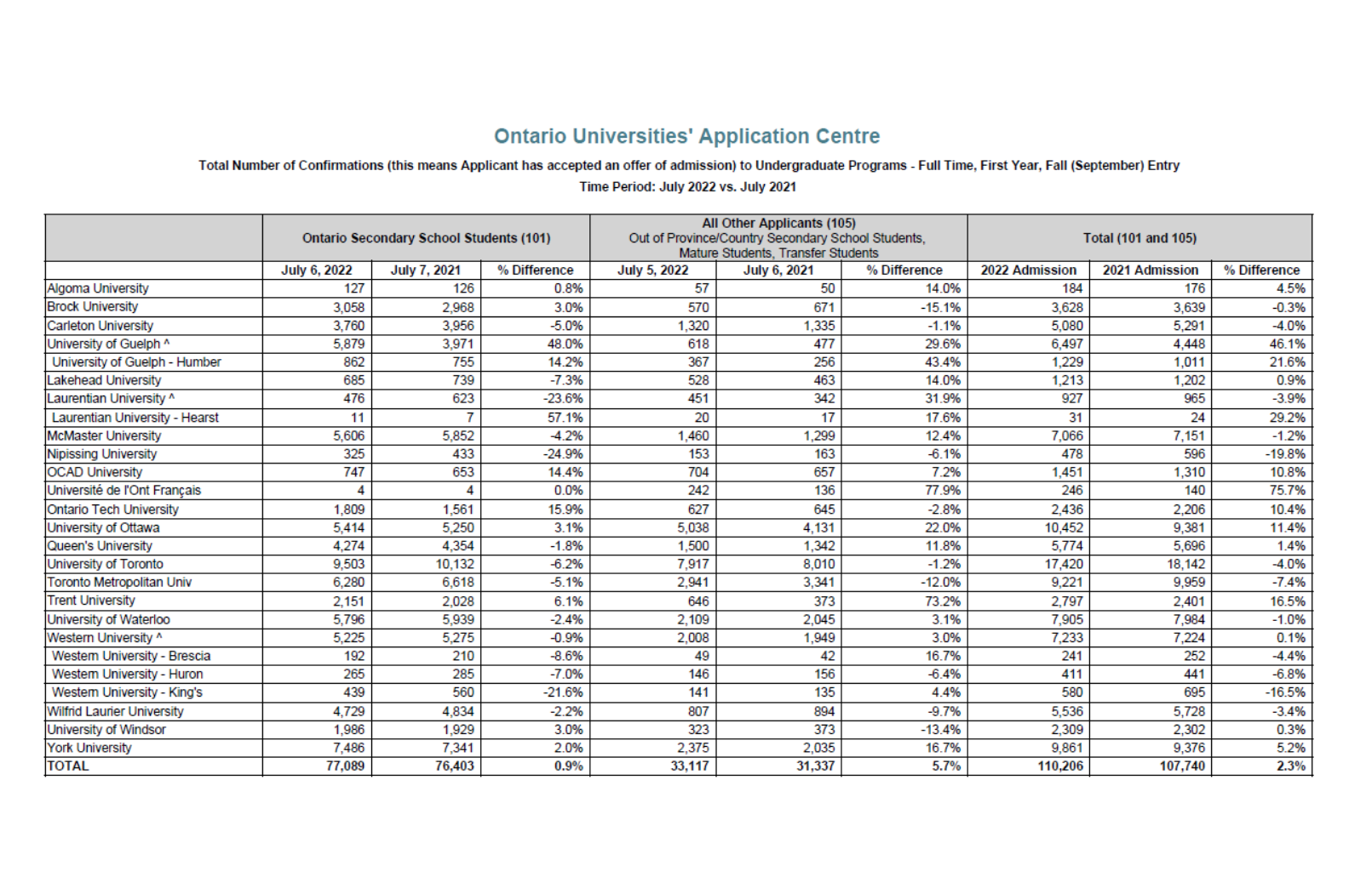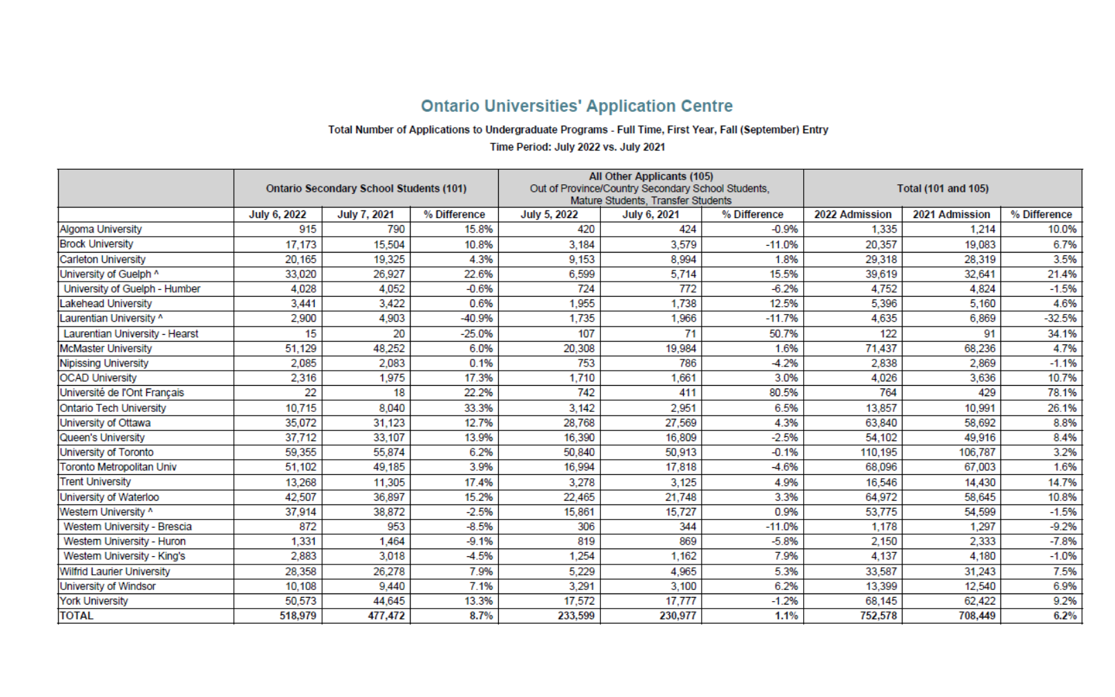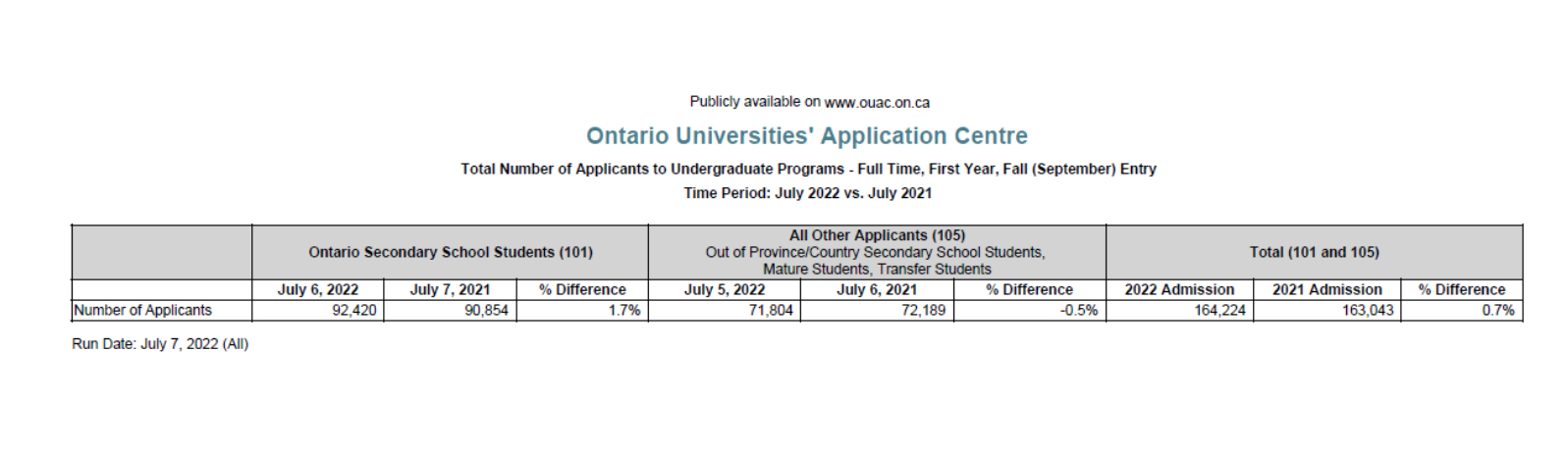 今天小编就带大家来看一下OUAC的官方数据,了解安省的申请和录取变化,23fall的申请者可以做个参考呀~