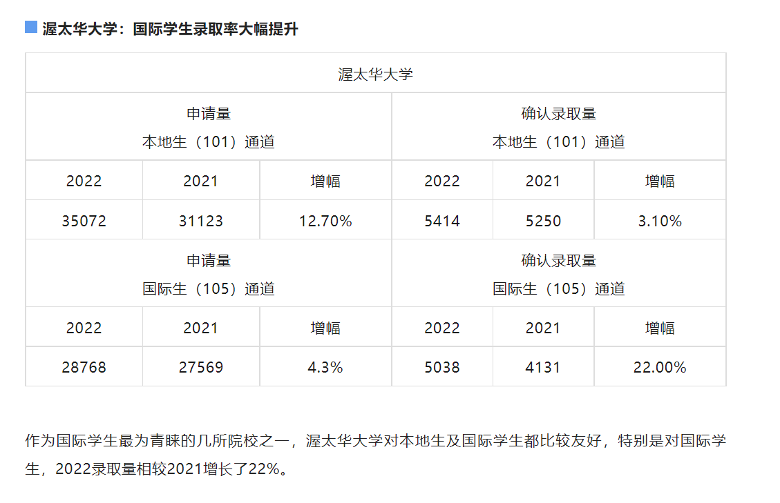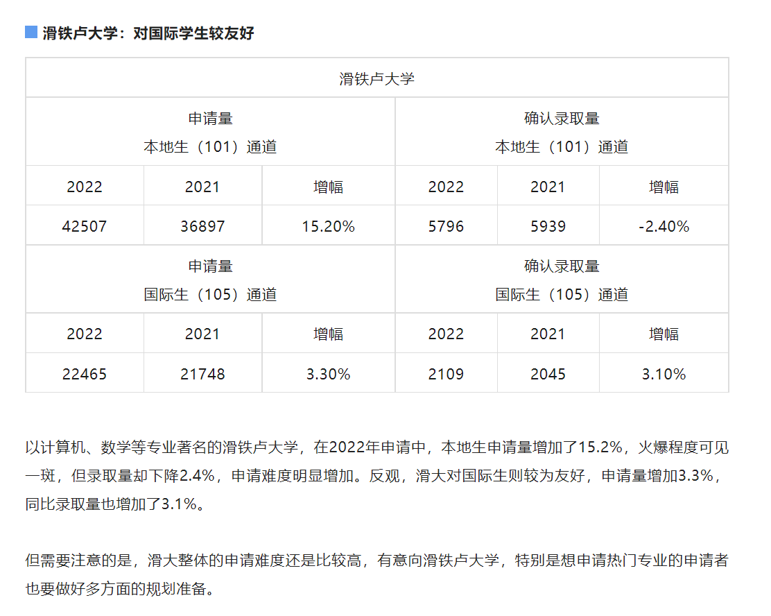 2022年总申请量为752578,相比2021年整体提升6.23%。由于竞争增大,大家在院校选择上也有更多顾虑,平均每人递交了4.6份申请,以提升自己的申请机会。