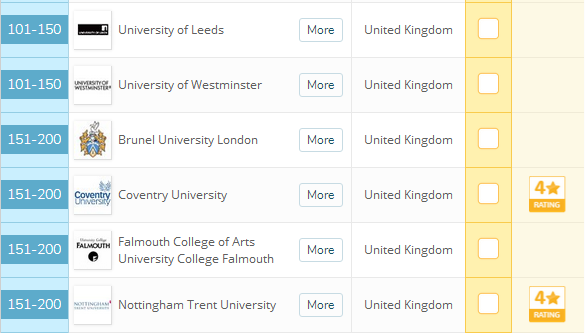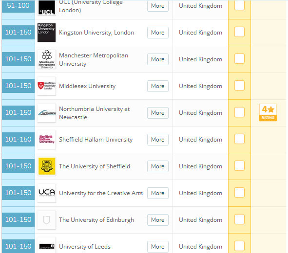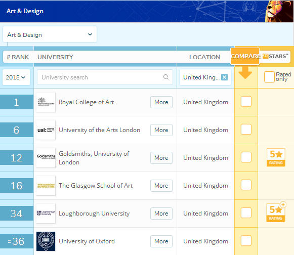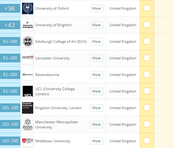 下面薛老师列出来的是艺术设计类专业QS世界排名前200的学校。