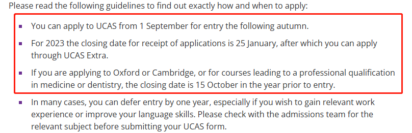 ——申请截止:入学申请需要在 2023年6月25日下午18:00 之前在UCAS 提交。