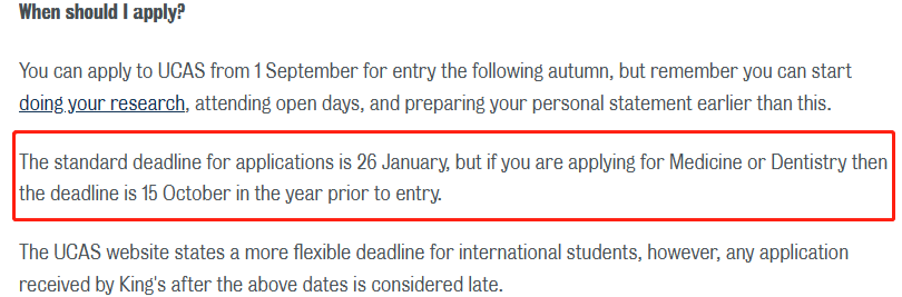 ——如果你申请的 医学或牙科 专业资格课程,截止日期是入学前一年的 10月15日 。