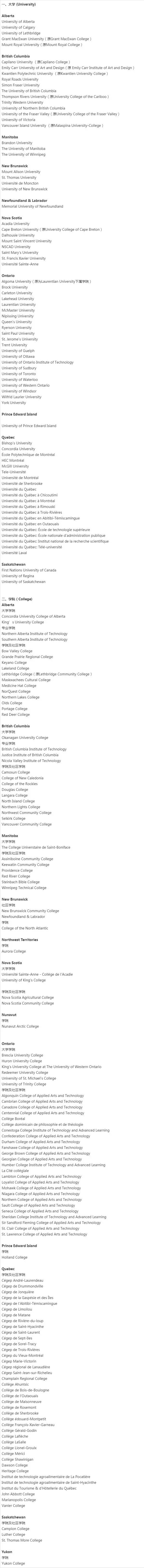 教育部认可的加拿大大学和学院名单:(按省排序,)