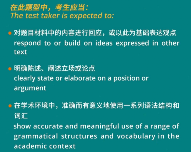 虽然新题型不再需要大篇幅的论证来支撑自己的观点,但要求学生拥有快速阅读理解的能力,并需要整合别人的观点化为己用。所以写作时间的缩短并不意味着写作难度下降。