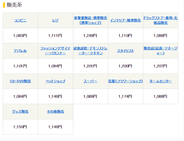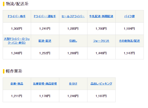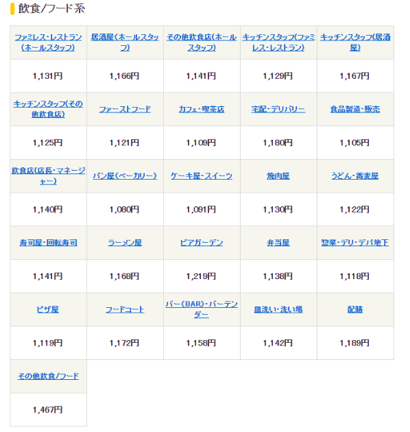 两个最低的平均时给与最高的相比差400日元左右。但是看一下最高的,一个是其他,点进去其实也就是各种餐饮店,然后就是酒吧,调酒师之类的,这个咱们留学生一般也干不了,而且一般下班都很晚,影响休息和学业,一个月的工资也高不了很多,相对来说做点别的可是能保证自己的安全和作息。