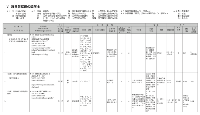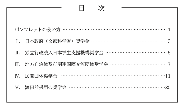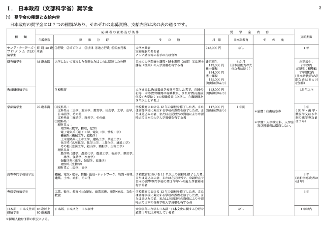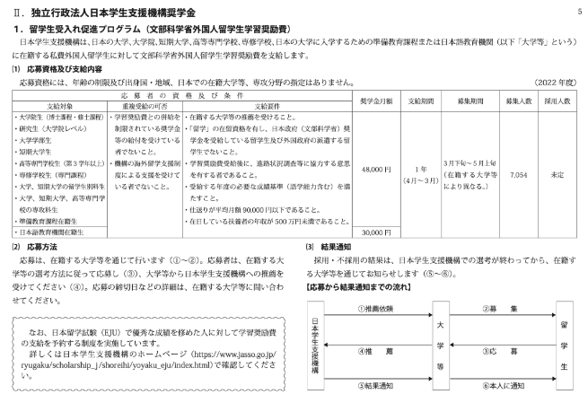 1.招收留学生促进计划(文部科学省外国留学生学习奖励费)
