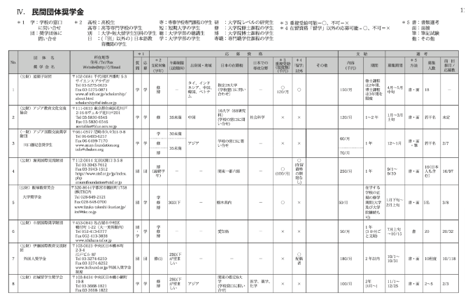 由民间企业或者民间奖学金团体支付,根据企业或团体的目的和性质,以所在地区的学校为对象,或限定与企业相关的专业领域;也有以交流为目的的对象国或地区的学生为对象募集的。