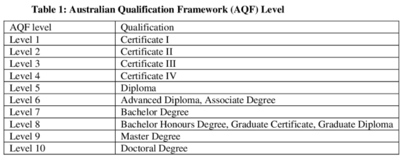 我们可以通过澳大利亚学历资格框架(AQF)(下图)进一步了解两者之间的不同。