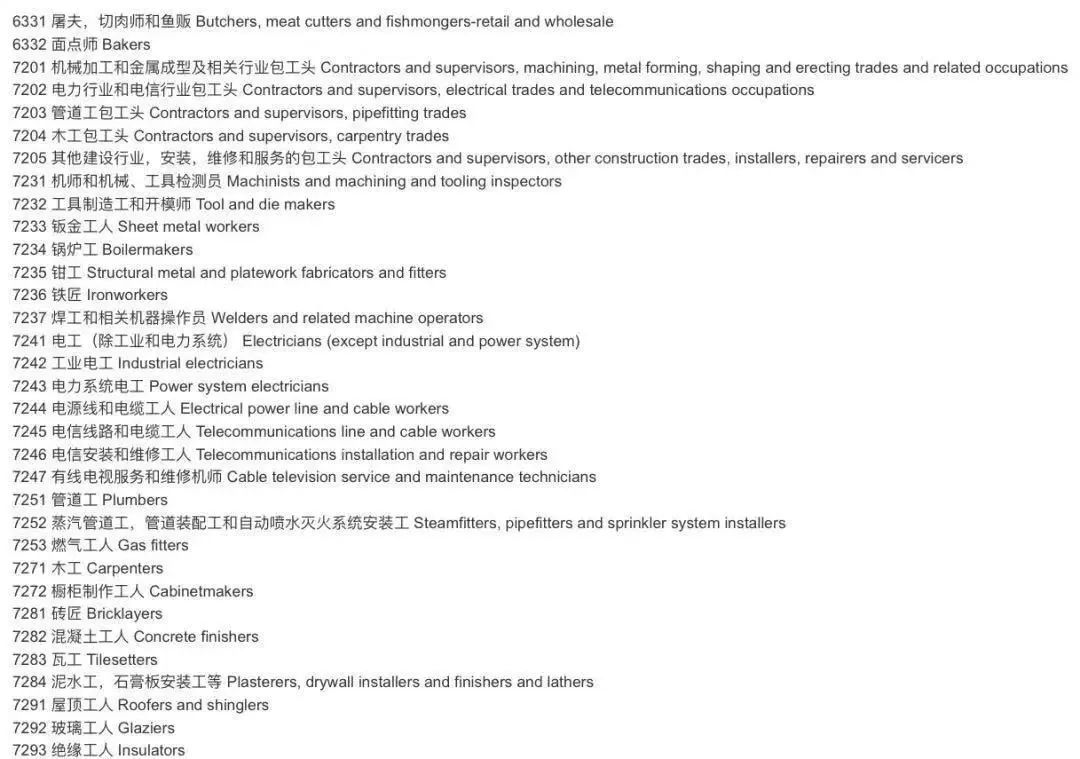 不仅如此,EE快速通道的技工类职业中也包含木工。
