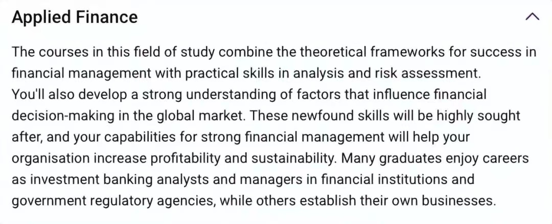 本课程旨在帮助学生深入了解金融领域,包括投资管理、财务管理和企业财务政策等领域,同时在会计、经济学和管理等领域打下坚实的基础,该学位由CFA认可。