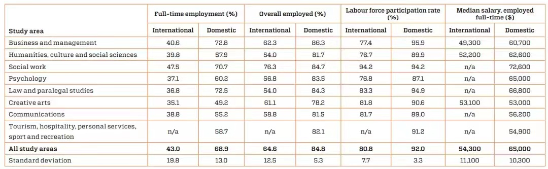 国际毕业生的就业结果在不同的研究领域有很大的差异,澳洲国内毕业生也是如此。领域的差别,是由行业大环境所决定的。