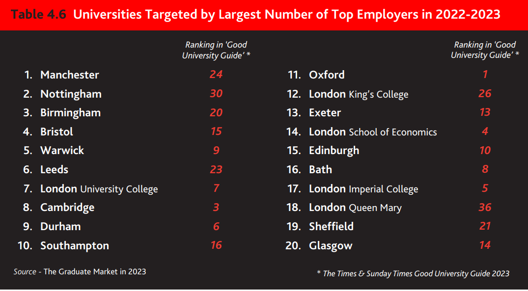 在High Fliers Research发布的《2023英国毕业生就业市场报告》中,曼大力压一众高校,蝉联【最受顶级雇主青睐学校】第一名。