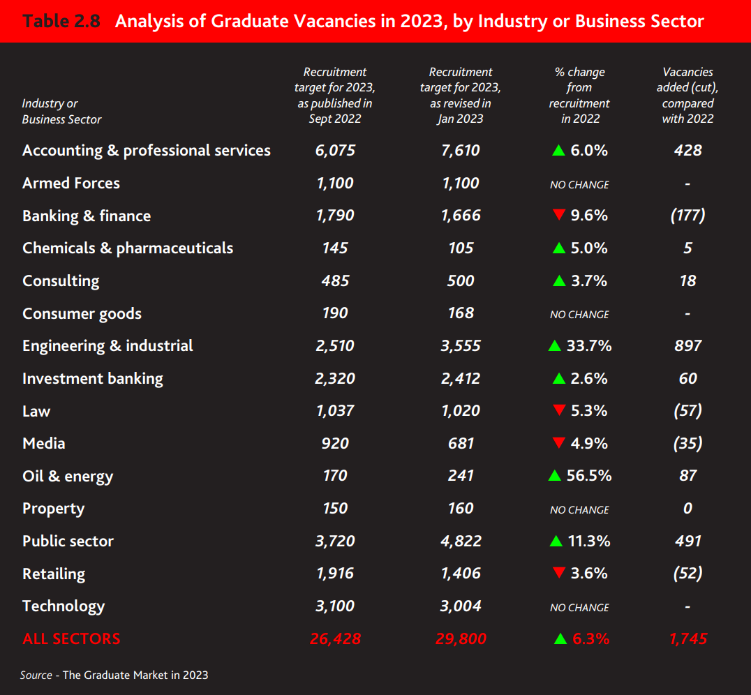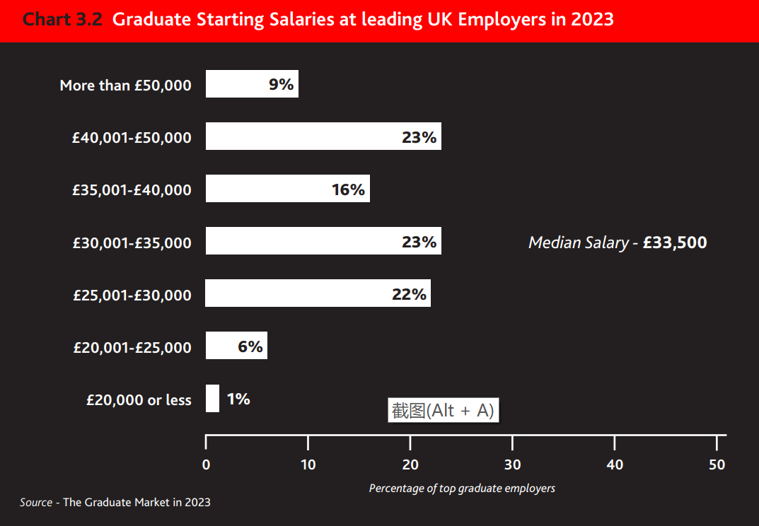 《2023英国毕业生就业市场报告》在今年年初针对英国百家最知名、最成功的雇主对应届毕业生岗位需求和起薪情况进行的研究。