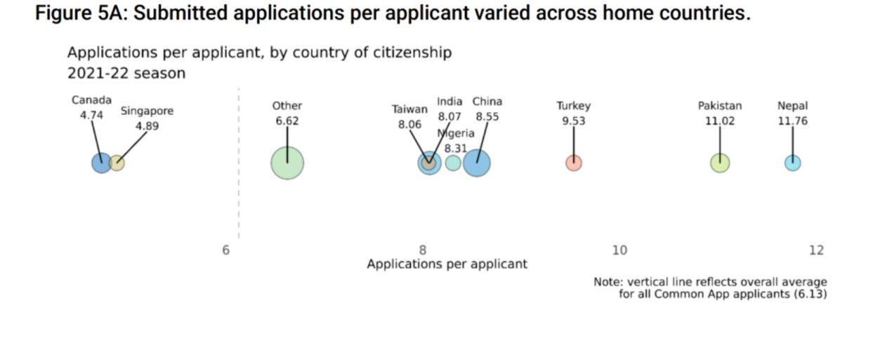 报告还揭示了申请中国际学生提交了多个学校的申请,平均每位国际学生提交了约5个学校申请。