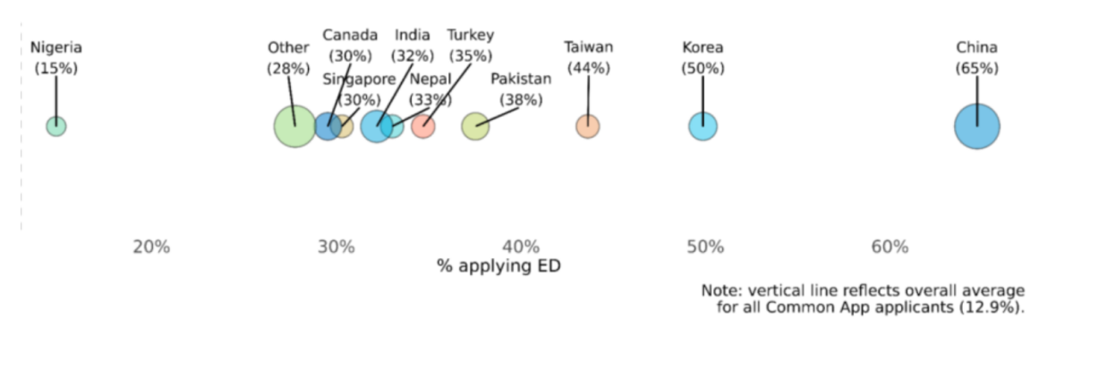 相反的,这一数据在国际生申请者中有着极速增多的趋势。中国学生的ED率高达65%,可以说是一骑绝尘。