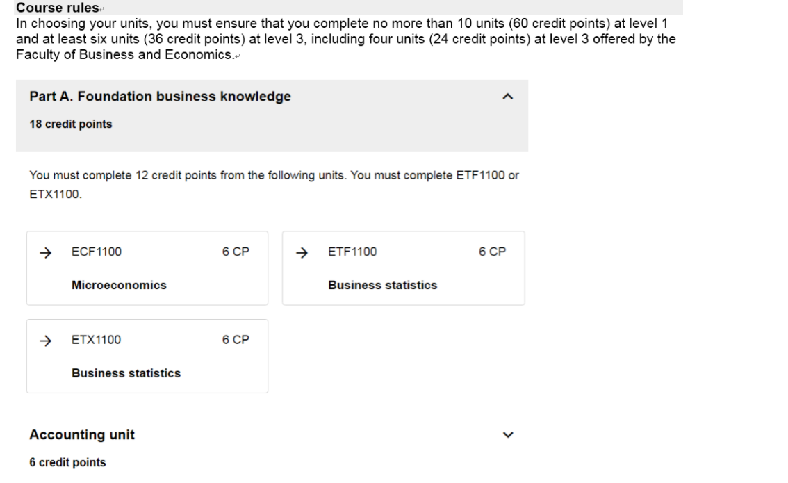 课程结构 : The course develops through the themes of foundation business knowledge, specialist discipline knowledge, capstone experience, and in addition includes elective study.