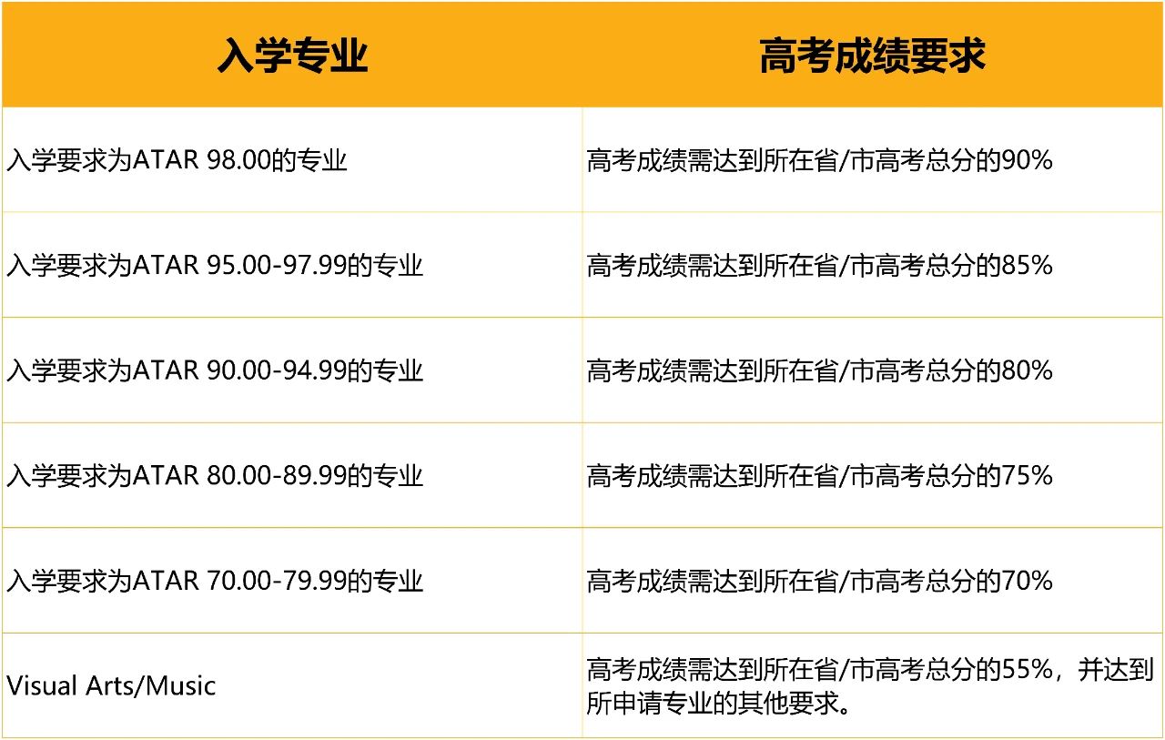 不过,凭借高考成绩申请澳洲名校,其他申请条件也不能忽视,尤其是 语言成绩 。 大部分学校要求本科雅思成绩6.0-6.5,预科5.5-6.0;成绩在一本二本线附近可参照学校的招生线直接申请入读本科,无需就读预科。