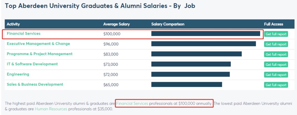 比如阿伯丁大学,毕业生薪酬最高的专业是金融,年薪为$100,000。