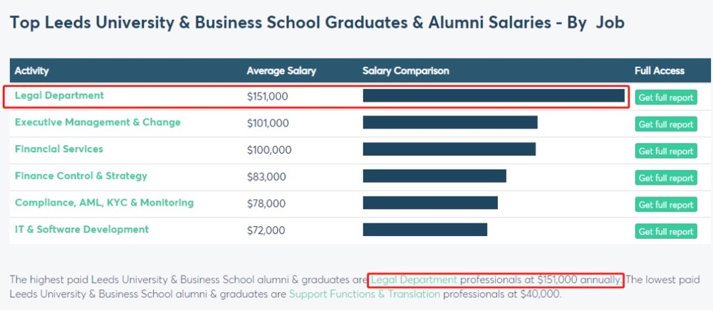 比如利兹大学,其毕业生薪资最高的专业就是法律,年薪高达$151,000。