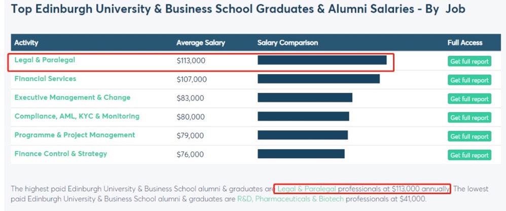 还有在爱丁堡大学的毕业生中,薪水最高的专业也是法律或者律师助理专业,年薪为$113,000。