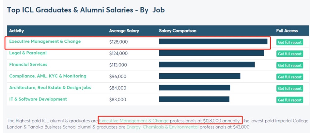 在帝国理工学院的毕业生中薪水最高的专业也是行政管理,年薪为$128,000。