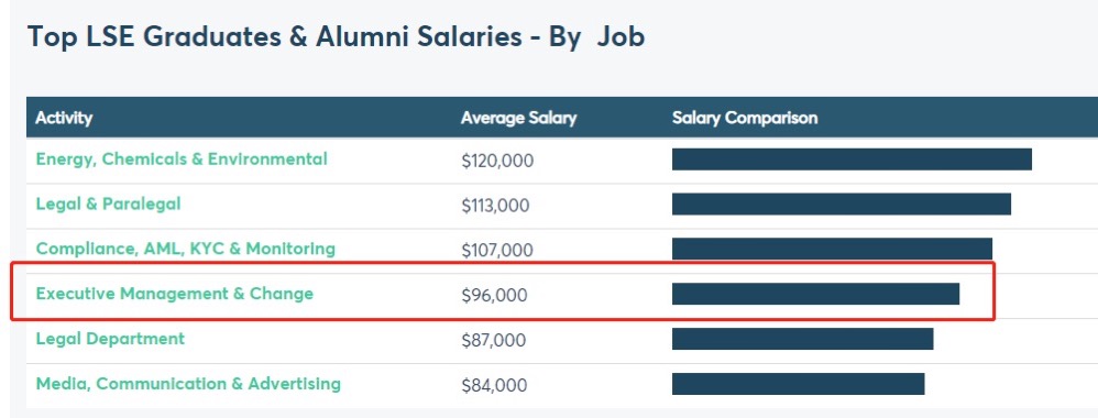 LSE行政管理专业的毕业生,年薪为$96,000。