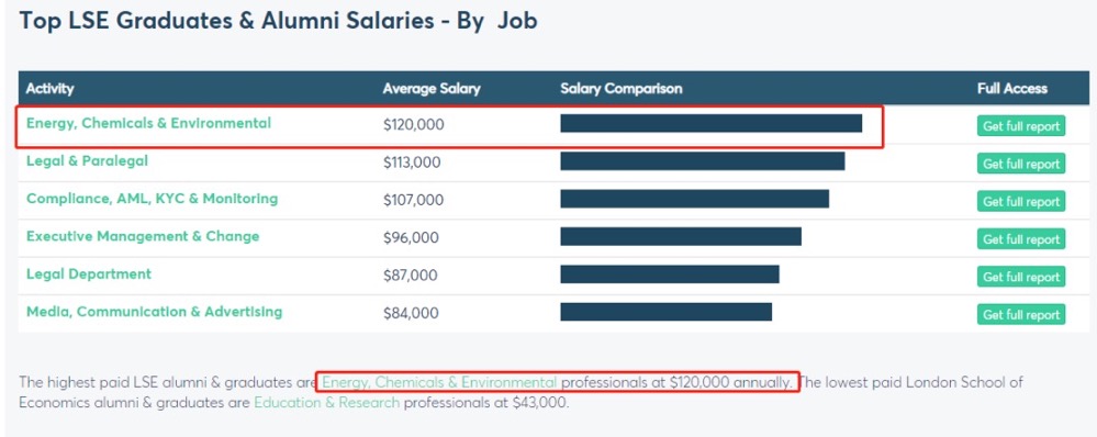 比如LSE的毕业生中薪水最高的是能源化工和环境专业,年薪为$120,000。