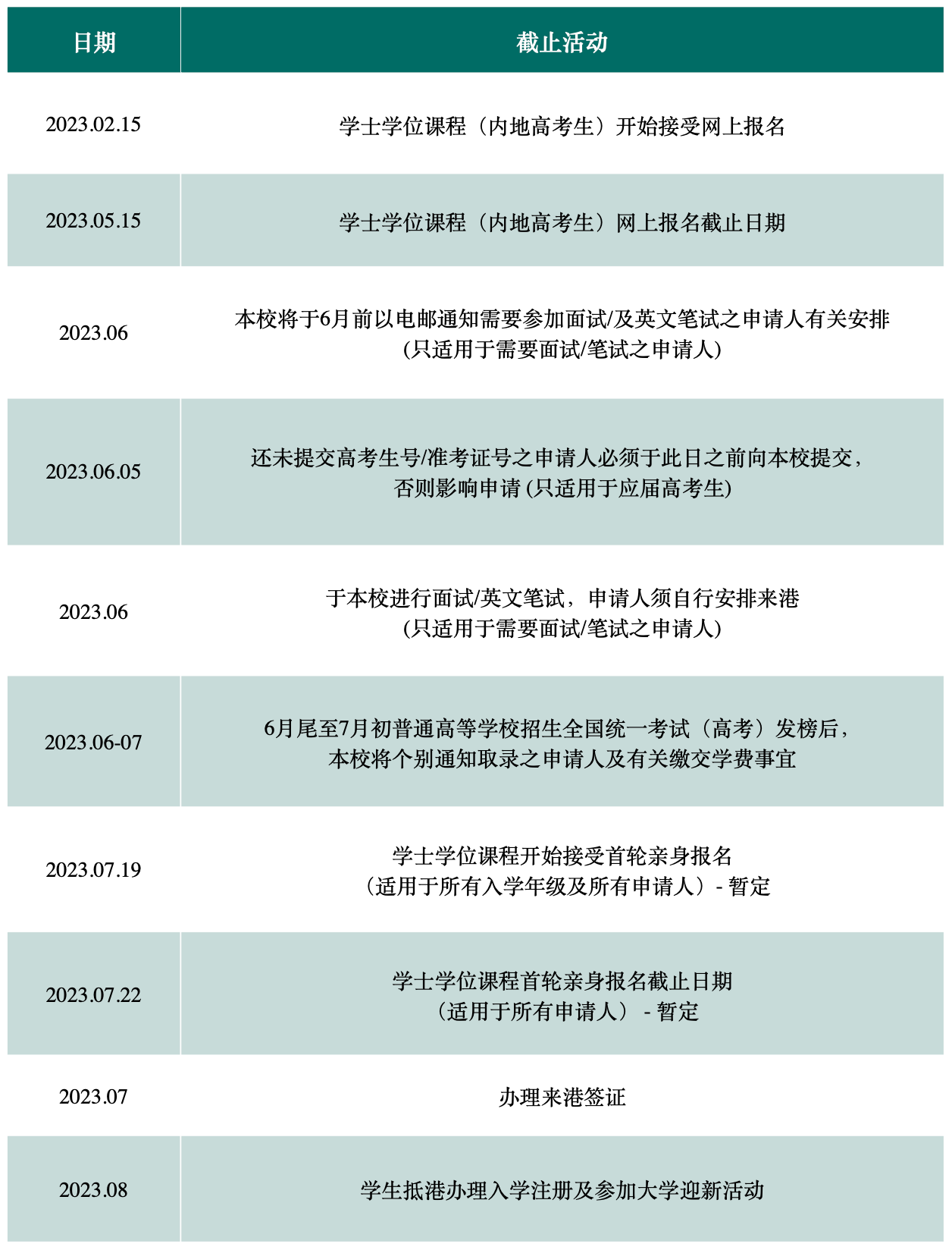 - 内地 高考成绩 是本校主要录取标准,申请资格为內地高中毕业;