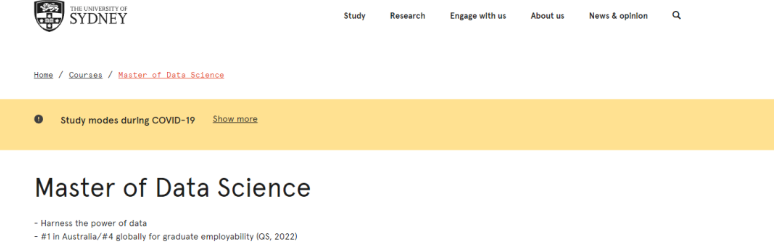 悉尼大学的数据科学硕士,比较适合热衷于从数据中挖掘有价值信息,并借此推动商业决策制定和研究成果的学生。