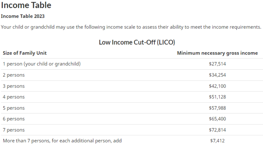 此外,申请人的子女或孙辈必须能够证明他们能够满足收入要求,即达到低收入门槛(LICO)。收入要求是评估子女或孙辈在经济上支持其家庭成员的能力,特别是因为赡养老年家庭成员的责任可能很大。