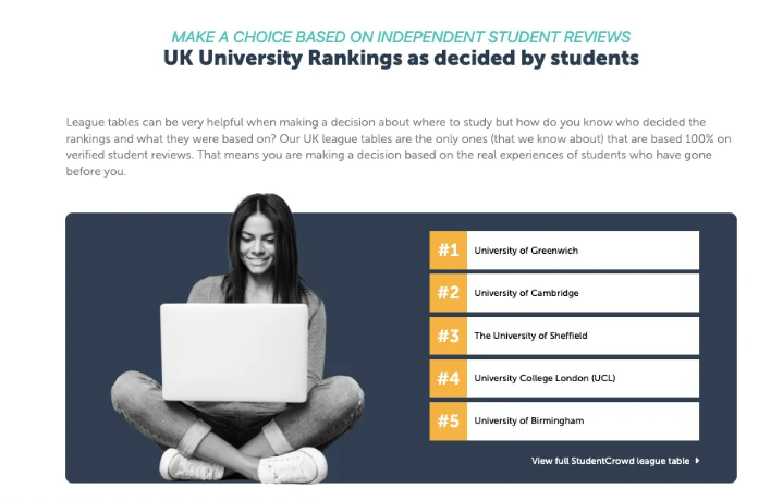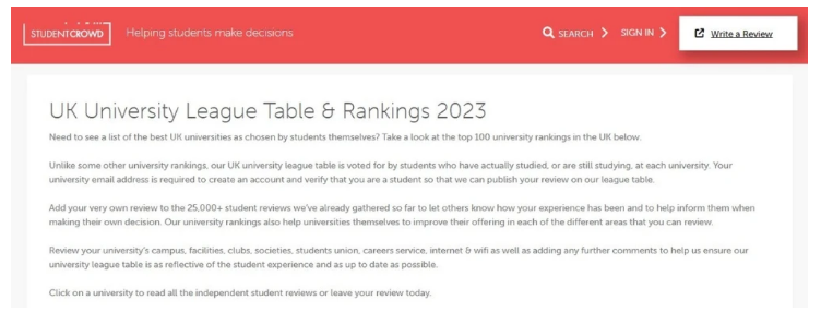 与很多其他大学排名不同,这份排名完全是由每所大学的在读生和毕业生评分选出的,参与者需验证学校邮箱才可以发表评分。