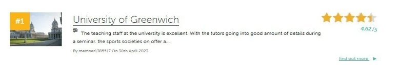 该校学生们觉得格林威治大学的学习体验非常好,导师既友善又有耐心,校园建筑非常漂亮,基础设施很棒,社团体验也很不错,整体学习体验很棒。