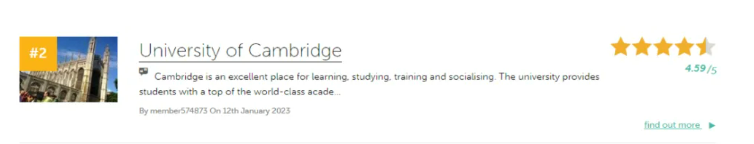 剑桥大学1209年成立,是罗素大学集团成员被誉为“金三角名校”和“G5”之一。英语世界中第二古老的大学,有着一流的学术实力和顶尖的教学资源。