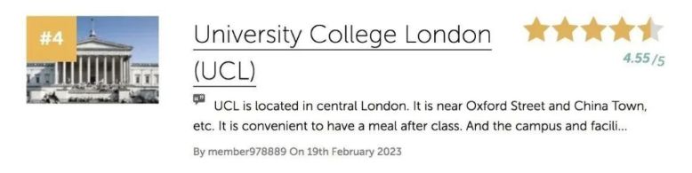 UCL的学生都称赞校园非常漂亮,有着一流的学习设施,尤其喜欢学生中心,并且社团活动非常丰富。还有不少学生表示,UCL的地理位置很好,处于伦敦市中心。