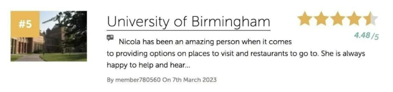 伯明翰大学始建于1825年,世界百强名校,在国内的知名度也相当高。很多学生还额外提到,在伯大学习出行很方便,校内就有火车站,学校离公交站也很近。