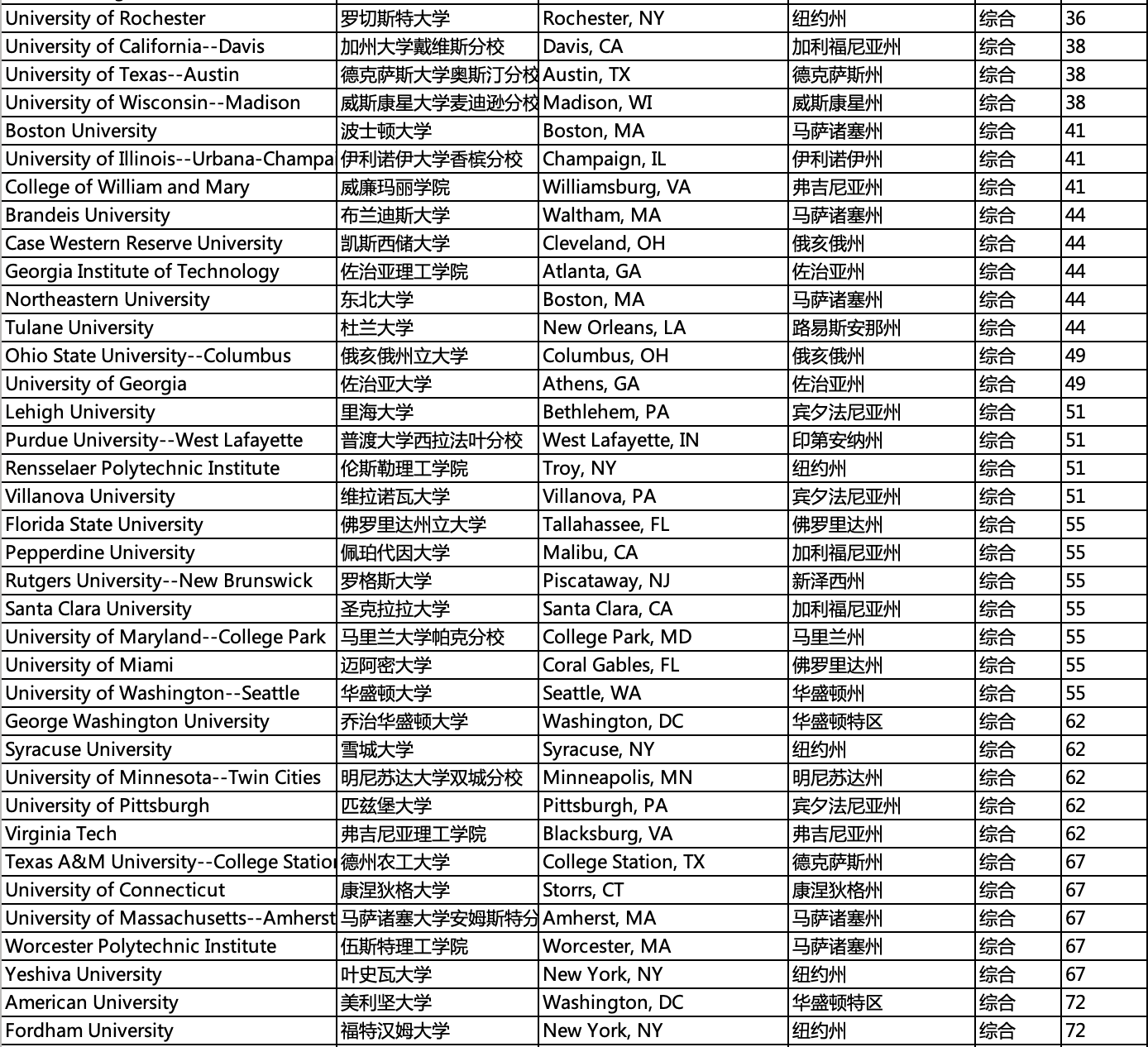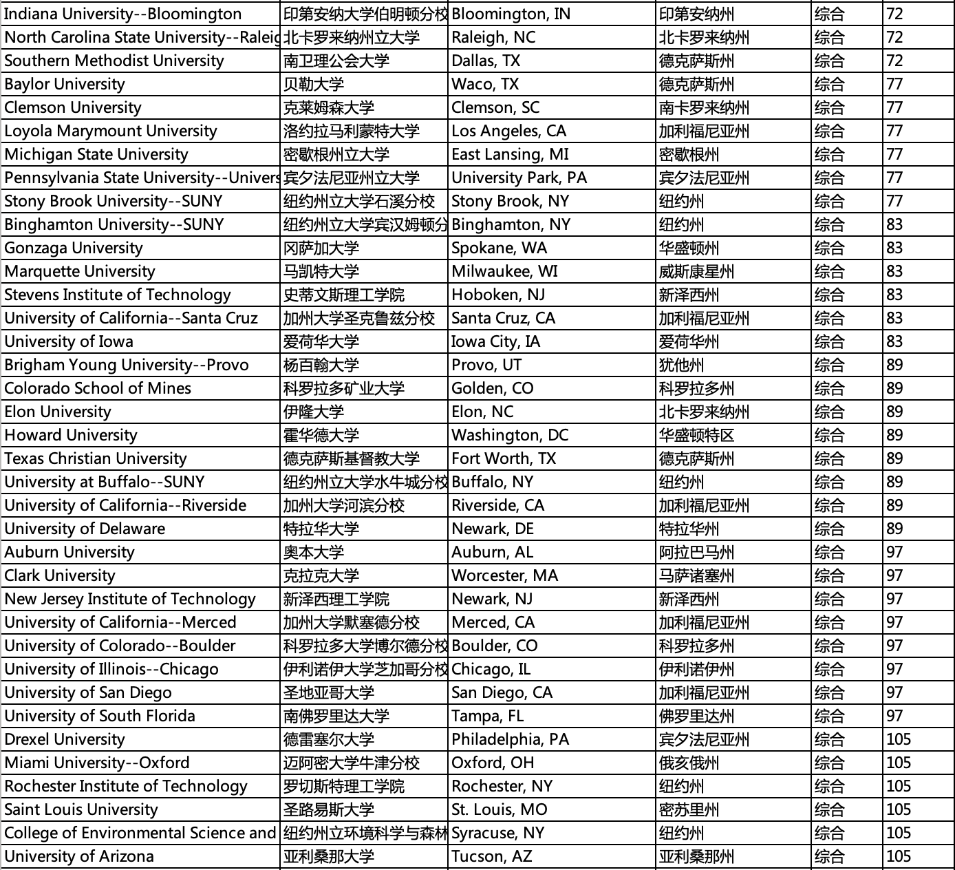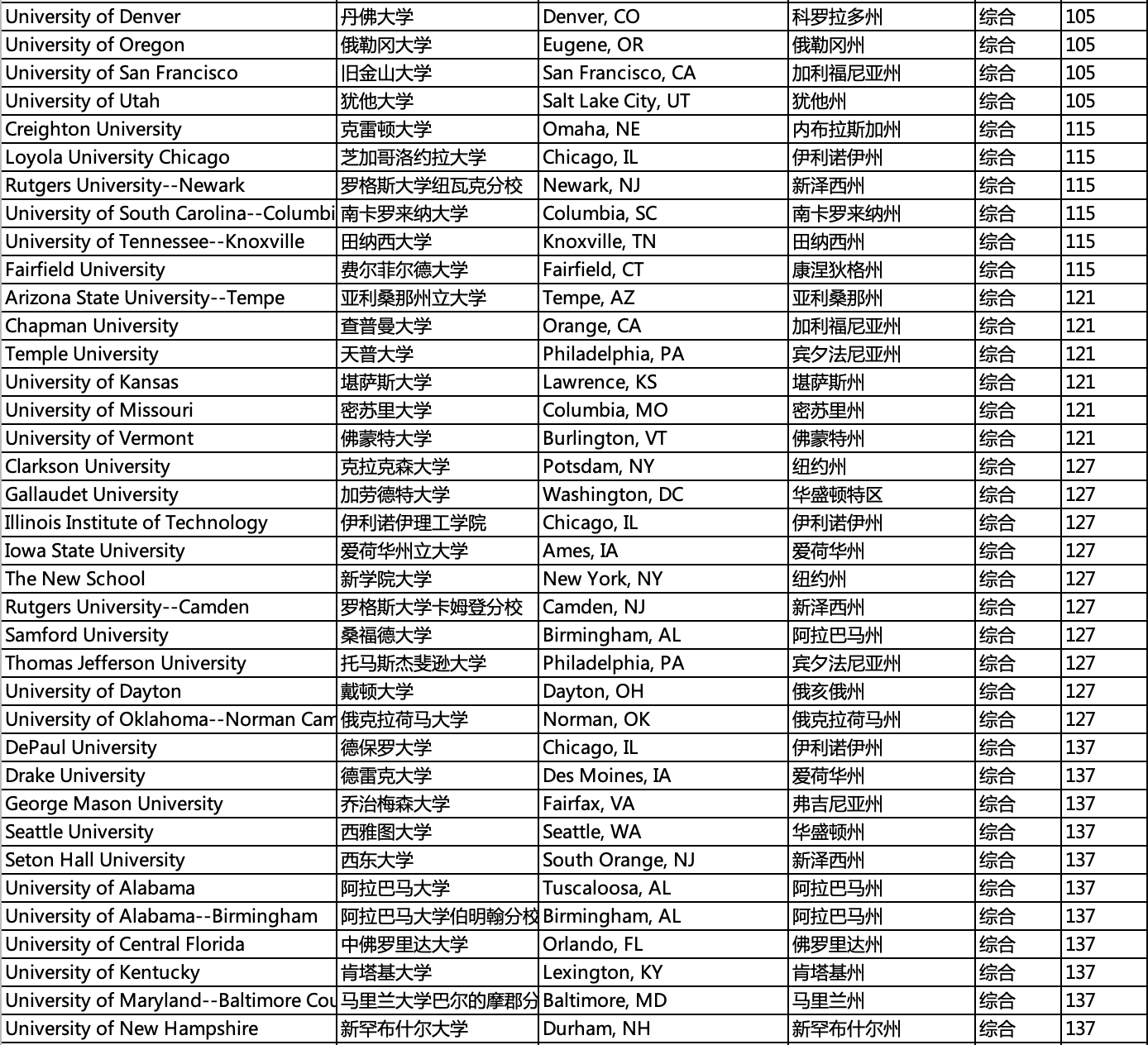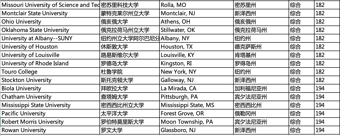 学校分布,所在州,城市,排名等